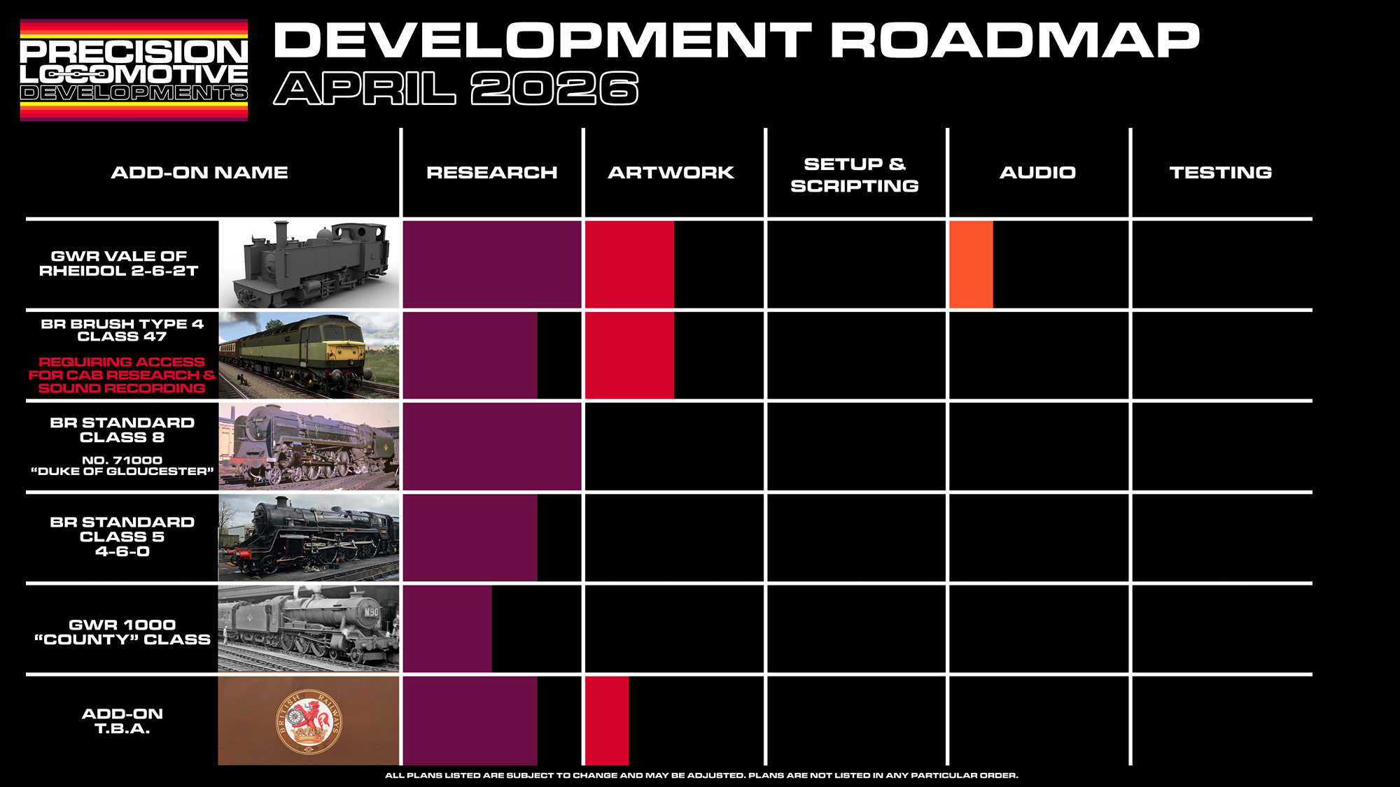 This list outlines projects we'd like to do in the future, subject to reference & sound availability: